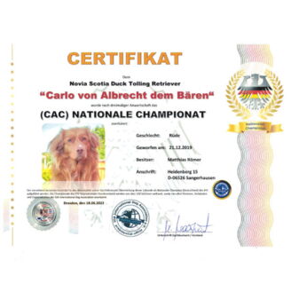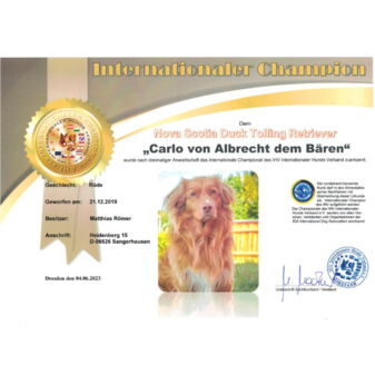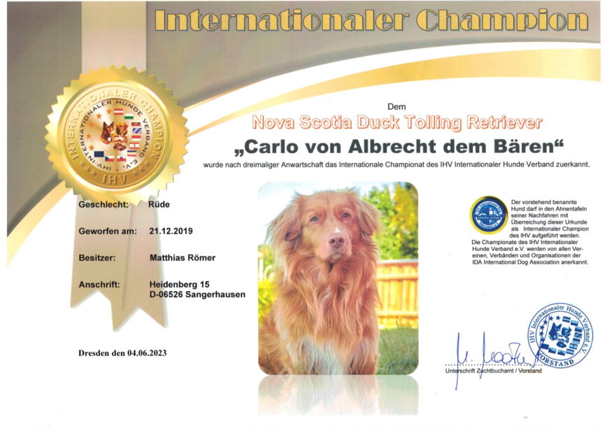Carlo hat das "Internationale Championat" erlangt und wir freuen uns riesig über diese Anerkennung.